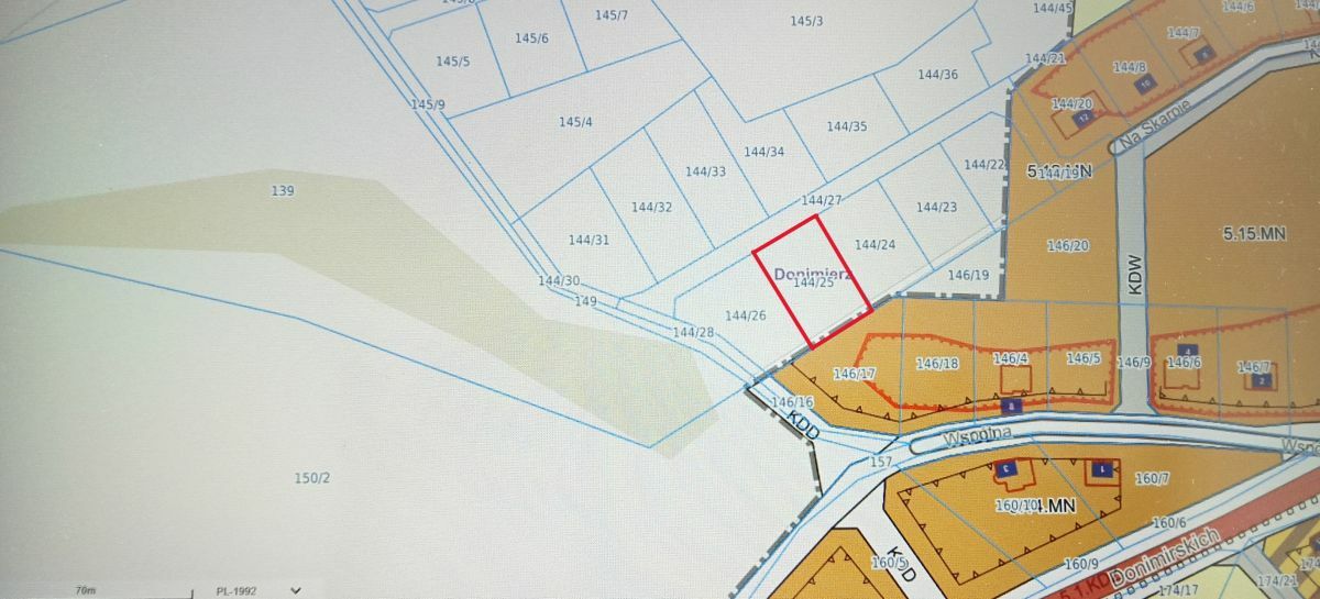 Działka pod zabudowę jednorodzinną (nr ewidencyjny 144/25) o powierzchni 1045 m2, położona w Donimierzu, w powiecie wejherowskim, w gminie Szemud.Dla terenu wydano warunki zabudowy ustalające między innymi: